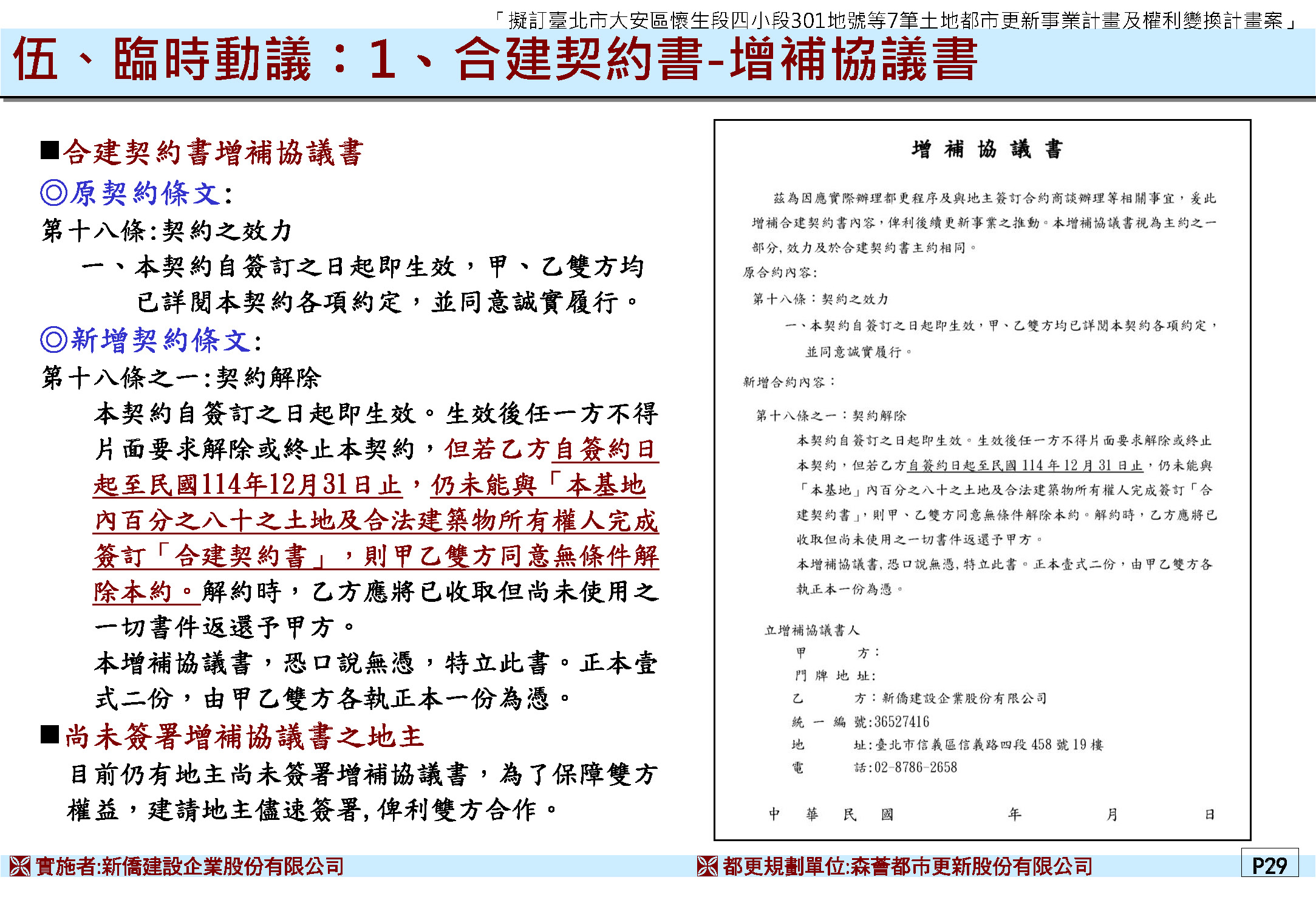 (二)實施者 : 新僑建設股份有限公司於